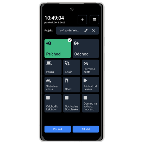 Zo inteligentného telefónu teda ľahko vytvoríte dochádzkový ternimál, ktorý umožňuje vkladať dochádzku pomocou NFC Čipov a kartičiek (iba telefóny s NFC čítačkou), číselných PIN.